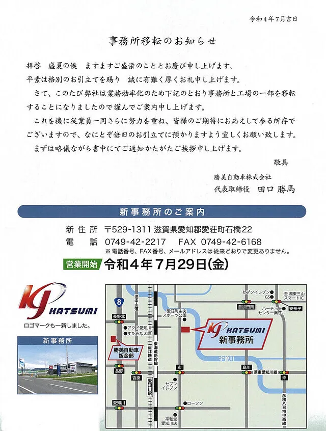 事務所・整備部が移転となりリニューアルオープンいたします。